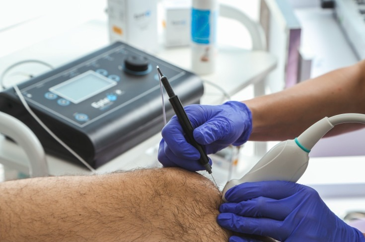 Hierbij brengt de speciaal hiervoor opgeleide fysiotherapeut onder echogeleiding een naaldje in het te behandelen gebied. Vervolgens wordt er met het PE-apparaat een lage intensiteit elektrische stroom toegediend. Dit zet een aantal chemische en fysiologische processen in gang die leiden tot weefselherstel van de aangedane pees.